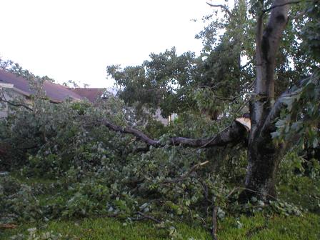 yards, the driveways! Most houses were under fallen pine trees, water